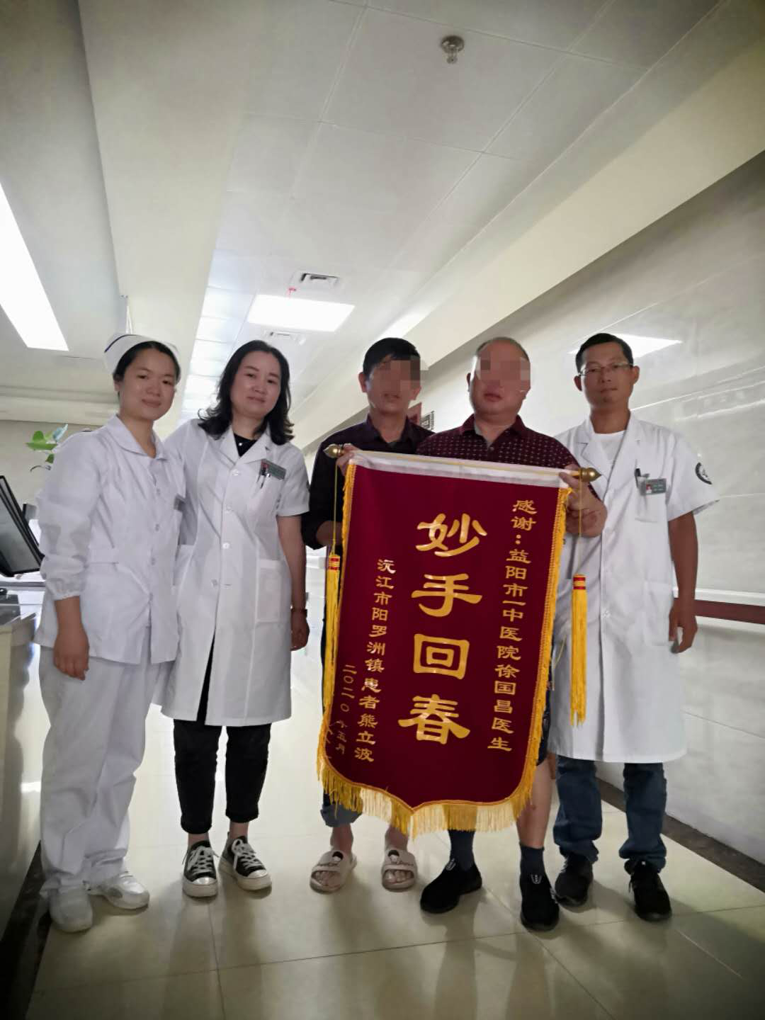 (左起:田新年护士长 曾梅芳主任 患者家属 患者 徐国昌主治医师)